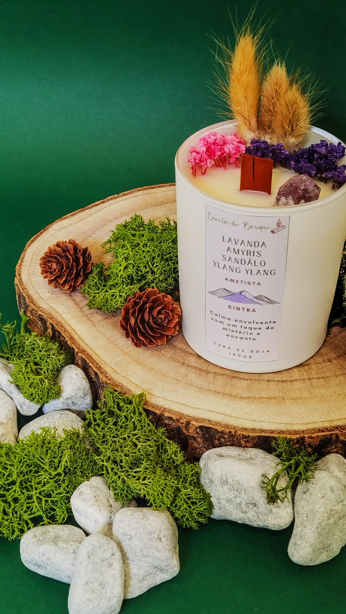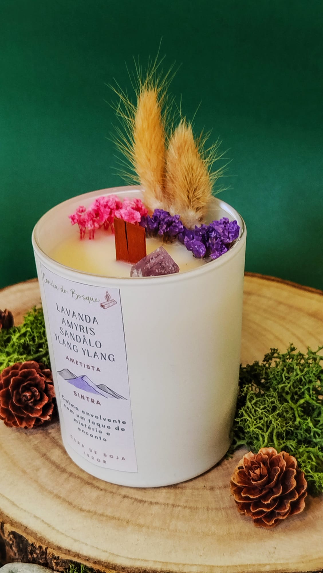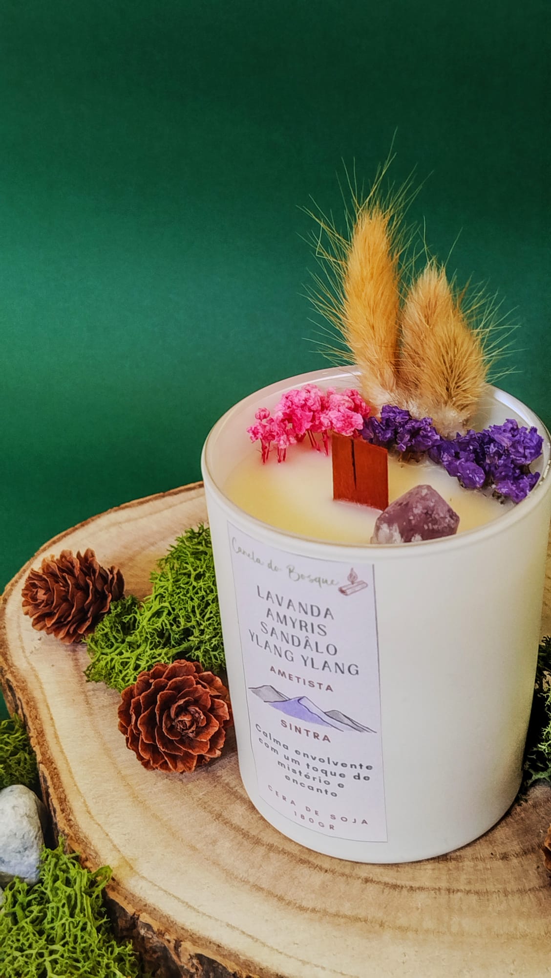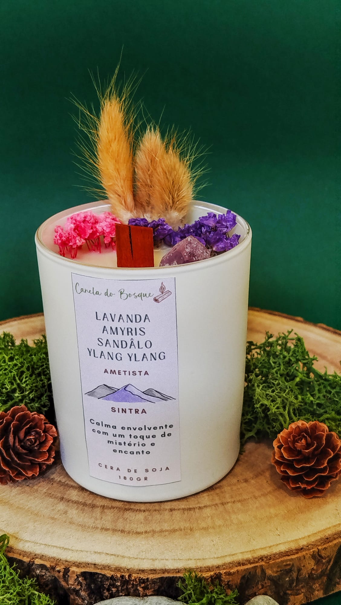 A Vela Sintra proporciona uma calma envolvente com um toque de mistério e encanto. O seu aroma floral e amadeirado cria uma atmosfera relaxante, perfeita para momentos de introspeção e ligação interior. Inspirada pela energia suave da ametista, esta vela acalma a mente, suaviza o coração e convida ao repouso consciente.